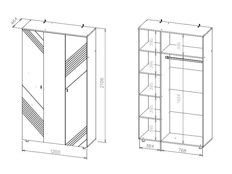 Размеры (Ш*В*Г)(мм): 1200*2106*464