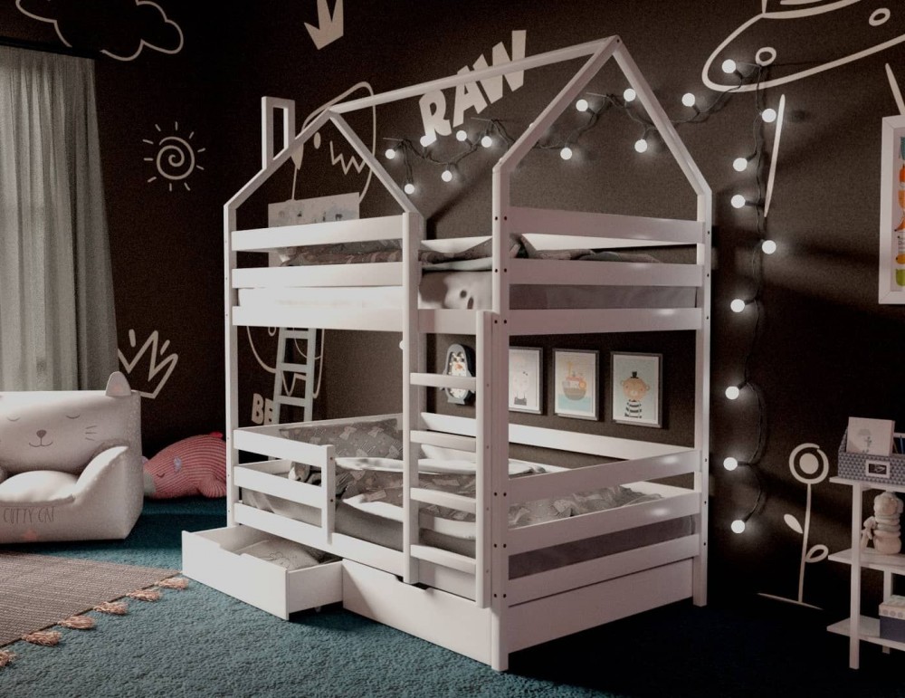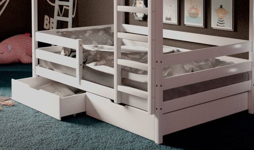 *Стоимость указана за модули: Кровать-домик двухъярусная 80*190 Белый (Ящики в стоимость не входят)