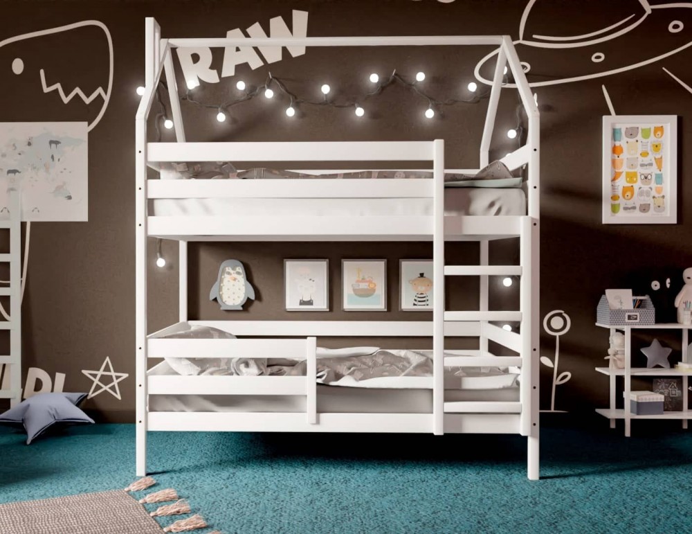 Кровать-домик двухъярусная 80*190 Белый