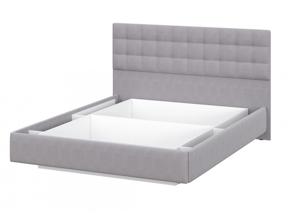 Кровать двойная №2 (универсальная 1.6х2.0) Серия 2 + основание (Белый/Серый ткань/Квадро Серый ткань)
