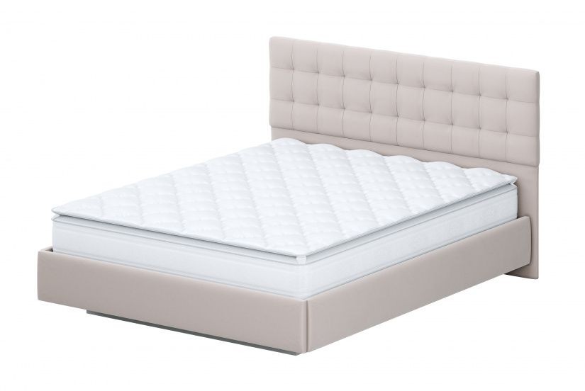 Кровать двойная №2 (универсальная 1.6х2.0) Серия 2 + основание с ПМ (Белый/Бежевый ткань/Квадро Бежевый ткань)