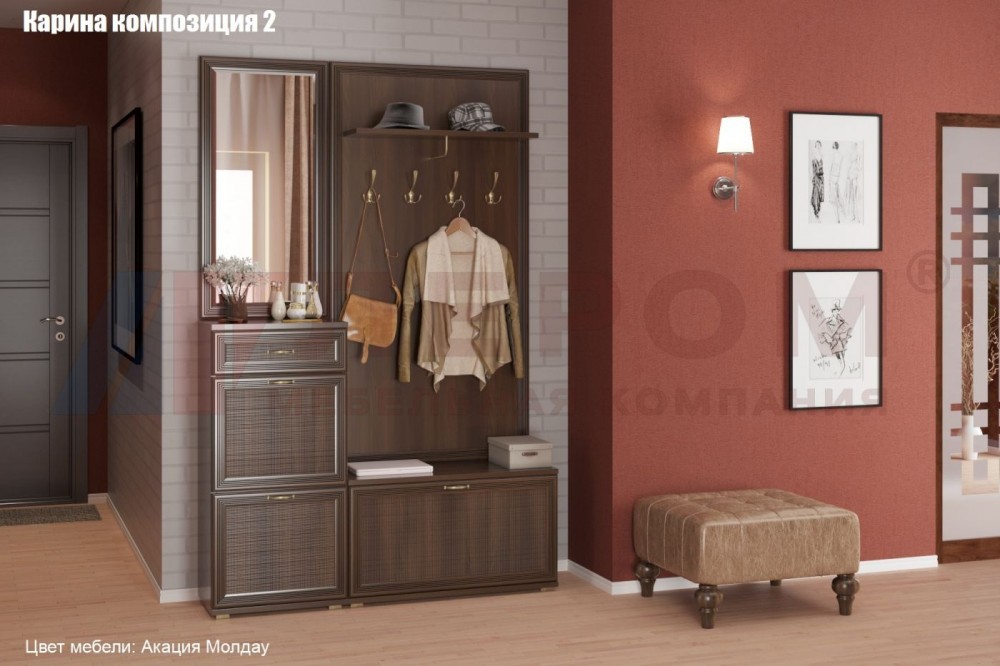 Коллекция включает в себя 38 оригинальных модулей, созданная с их помощью композиция отлично впишется в любое помещение. Программа «Карина» позволит создать уют и гармонию в прихожей.