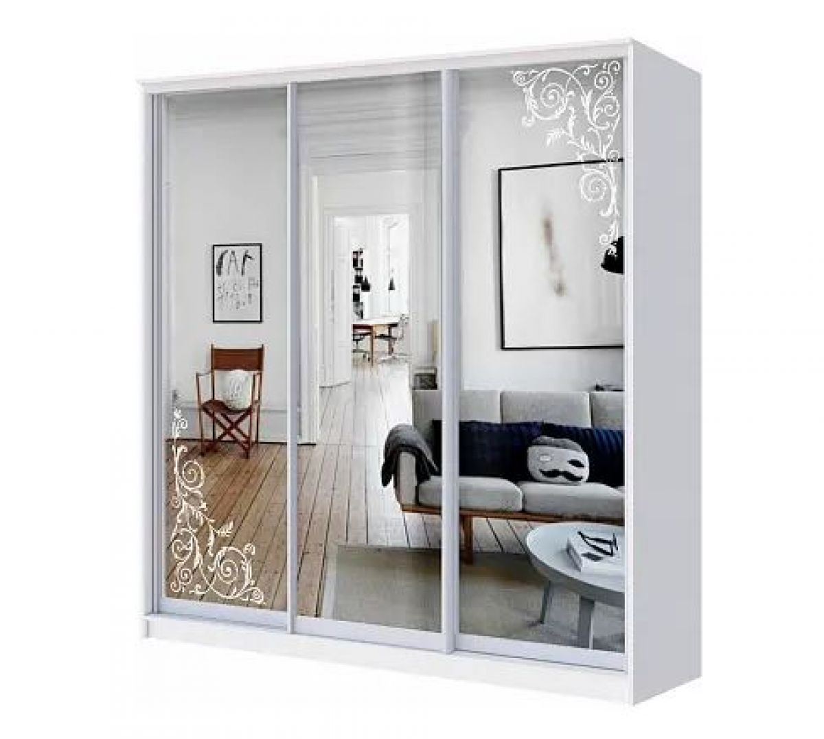 Фасад: 1 дверь Зеркало + 2 двери Зеркало с пескоструйной обработкой