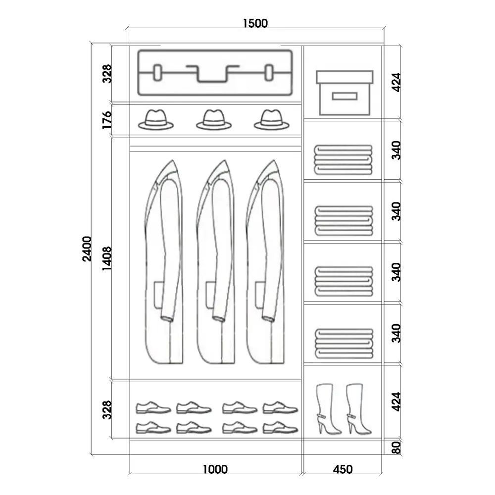 Размер (Ш*Г*В): 1500*620*2400 мм