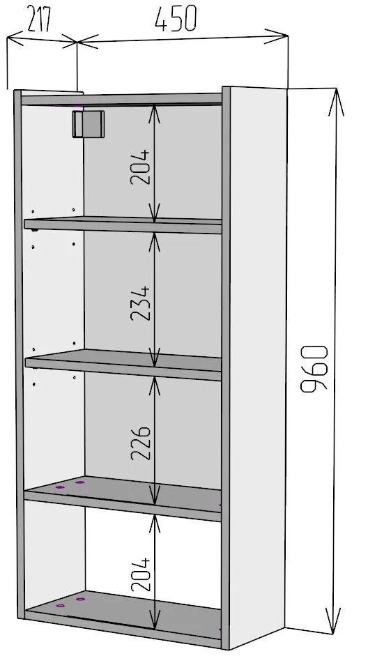 Шкаф навесной для ванной комнаты и туалета MH24-MA 960х450х217 (Белый-М 10.1.1) Белый глянец