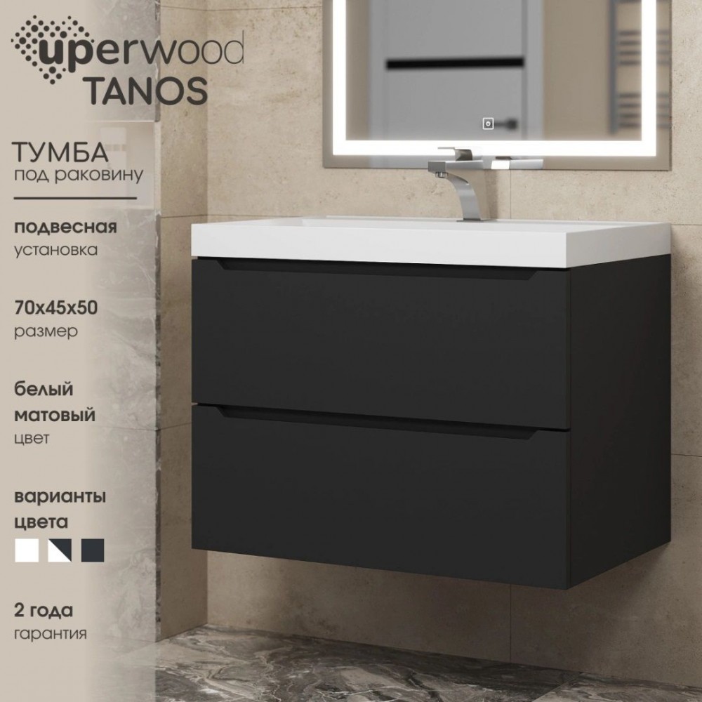 Тумба под раковину Uperwood Tanos 70 см, подвесная, черная матовая