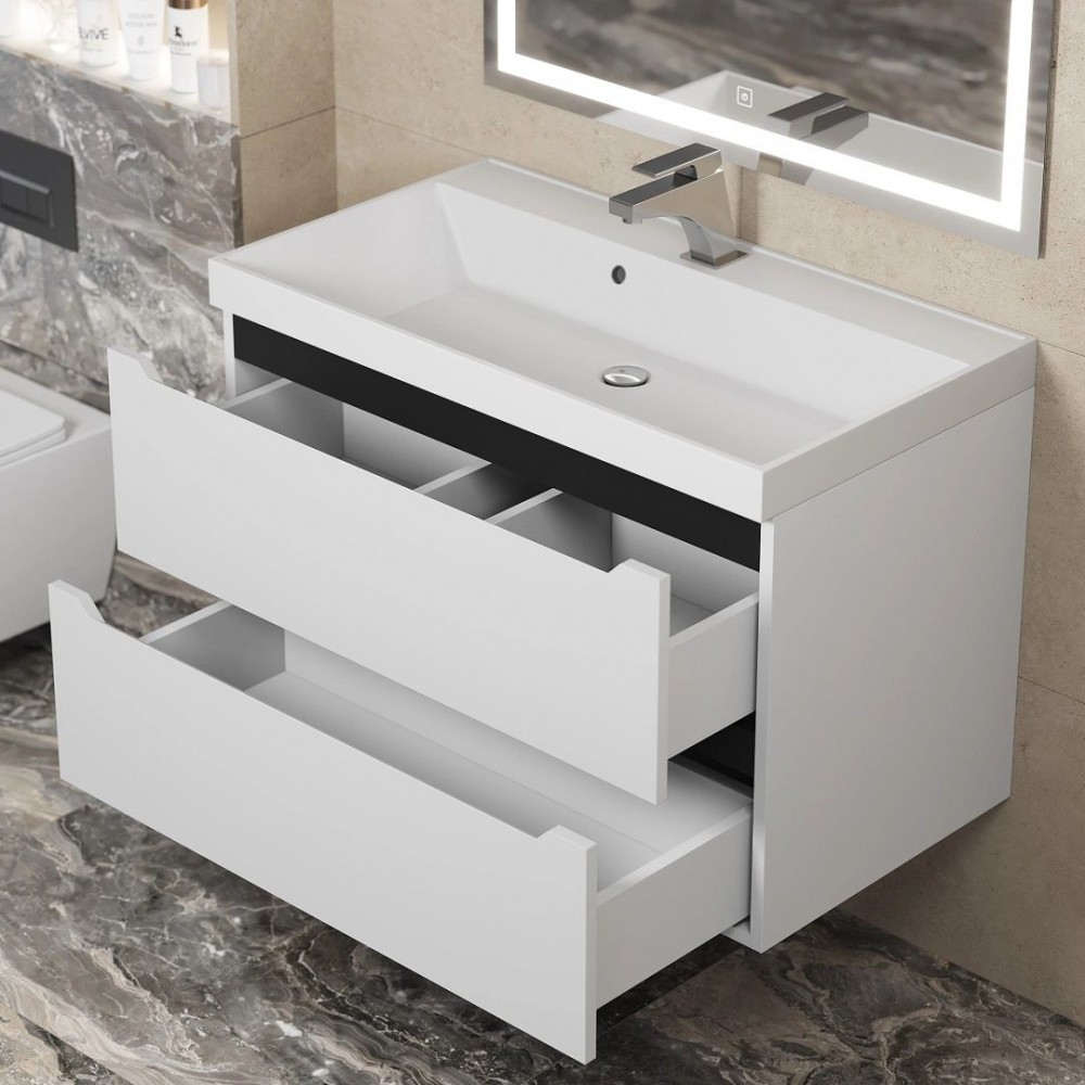 Тумба под раковину Uperwood Tanos 80 см, подвесная, белая/графит
